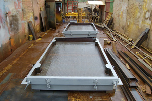 2. Армирование. Армирование железобетонных изделий является обязательным этапом при производстве дорожных плит. Для этого используются стальные прутья или сетки, которые укладываются в форму перед заливкой бетона. Армирование значительно повышает прочность и устойчивость плит к механическим нагрузкам, что особенно важно в условиях интенсивного движения транспорта. В зависимости от требуемых характеристик изделия, армирование может быть однослойным или многослойным.